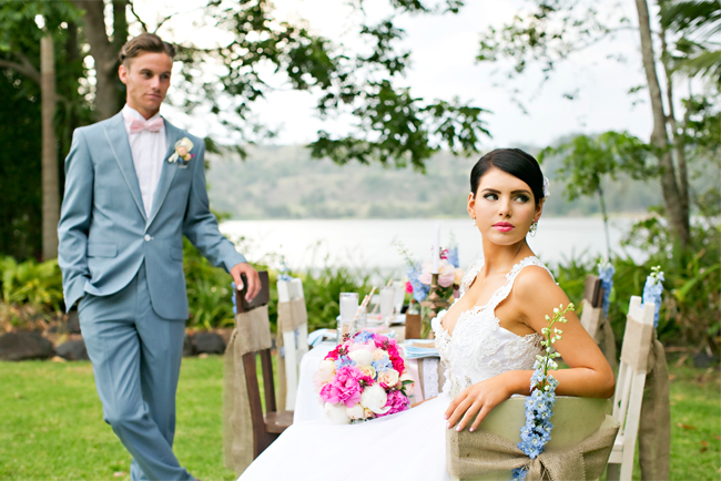 A stunning location in the Sunshine Coast hinterland on the lake, pretty pastels with a pop of bright pink florals, a dreamy dress and hair and makeup perfection. This and more is to be expected when you inevitably scroll down. I know you won’t be able to help yourself. Who could in the face of beauty such as this?