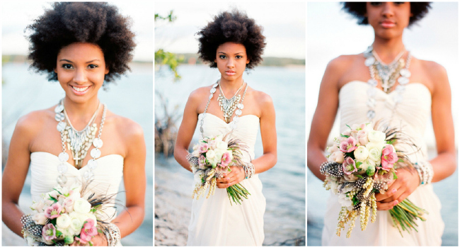 This bohemian bridal look is fresh, fun, funky and fabulous. And we are positively head over heels in love with everything about this bridal style. The amazing photographs were taken by none other than the outstanding talent that is Sunshine Coast wedding photographer, Jodi McDonald. The stunningly gorgeous model, Soraya, was prettied up with makeup by Trish Falzon of TF Makeup Artist, and Shae Roberts was both hair stylist and assistant makeup artist. Florals with feathers are a real winner for a bohemian wedding, and we simply adore this bouquet by A Sculpted Leaf.