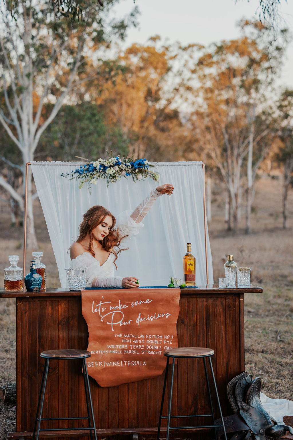 Gympie wedding venue rustic mobile bar with bride celebrating