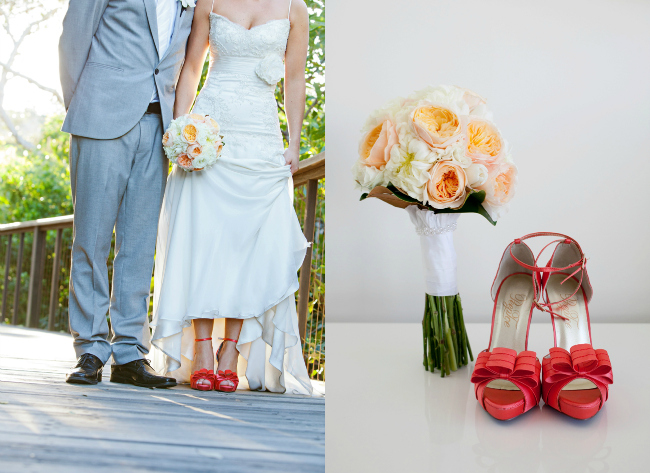 The wonderful thing about wedding shoes nowadays is anything goes. Colours of any variety, pretty, delicate textures, adornments galore. Heels of all kinds – pumps, peep toes, sling backs, buckled and strappy.