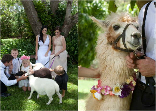There are a number of ways you could entertain the kidlets at your wedding… Their own table with colouring and puzzle activities, disposable cameras, lollies. Or you could have a whole animal farm for their amusement and yours! This one will be fun for the adults too, and it’s easily organised when you hire yourself a private farm for your wedding day.