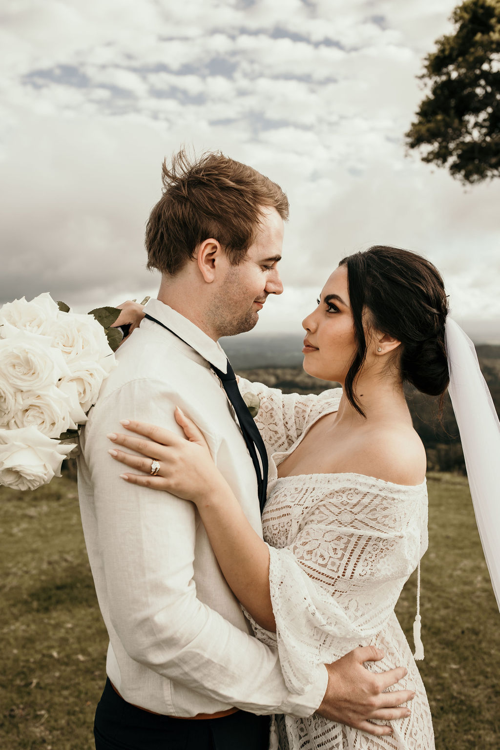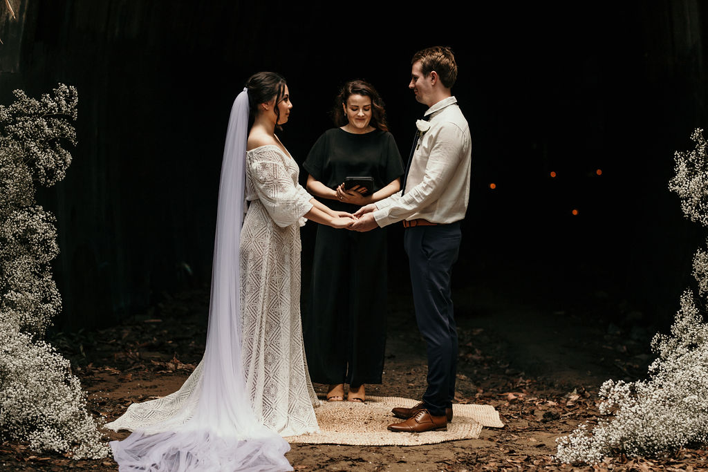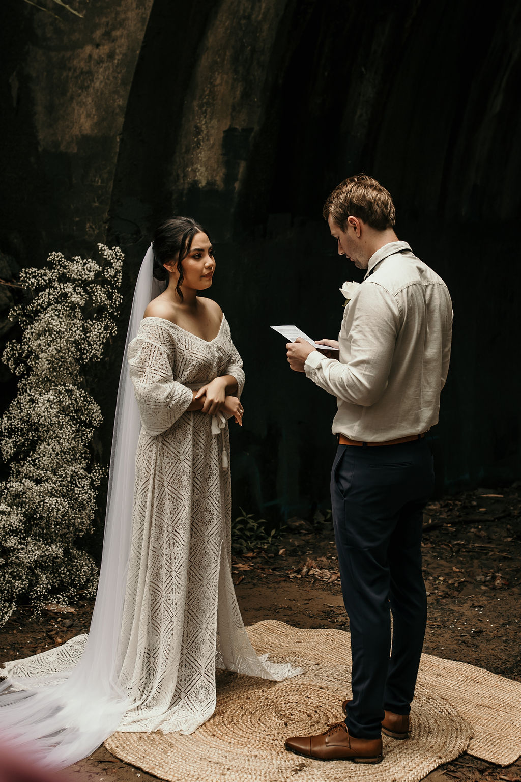 The crew trekked to the Dularha Old Railway Tunnel entrance to hold their ceremony with the magical light of beaming through as their backdrop. After vows were exchanged, the couple and their photographer, Naturally Jek Photography, headed to the iconic One Tree Hill for an epically beautiful photoshoot.