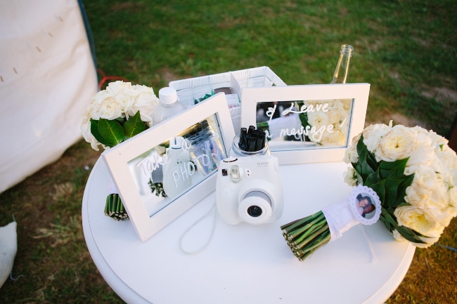 The bride gave Little Owl Events a clear direction for her wedding style: modern elegance. This was achieved beautifully with clean clear glass vases, chrome details, and a polaroid photo booth with a fun backdrop of pastel ribbon streamers.